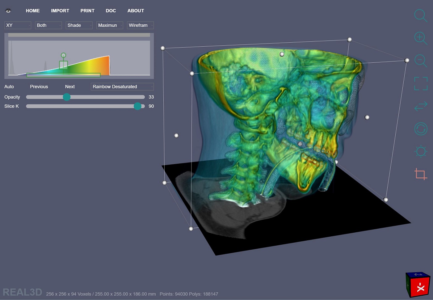 Real3d Web Viewer is a standalone web application that provides powerful yet useful rendering features for volume and surface data visualization. It can be used to load VTI (voxel data in ascii, binary and binary+zlib), STL, and OBJ file formats from URL or from local drive. It works perfectly fine on all desktop and mobile web browsers. Here is the link to the Web Viewer, try it: https://real3dtech.com/webviewer/v